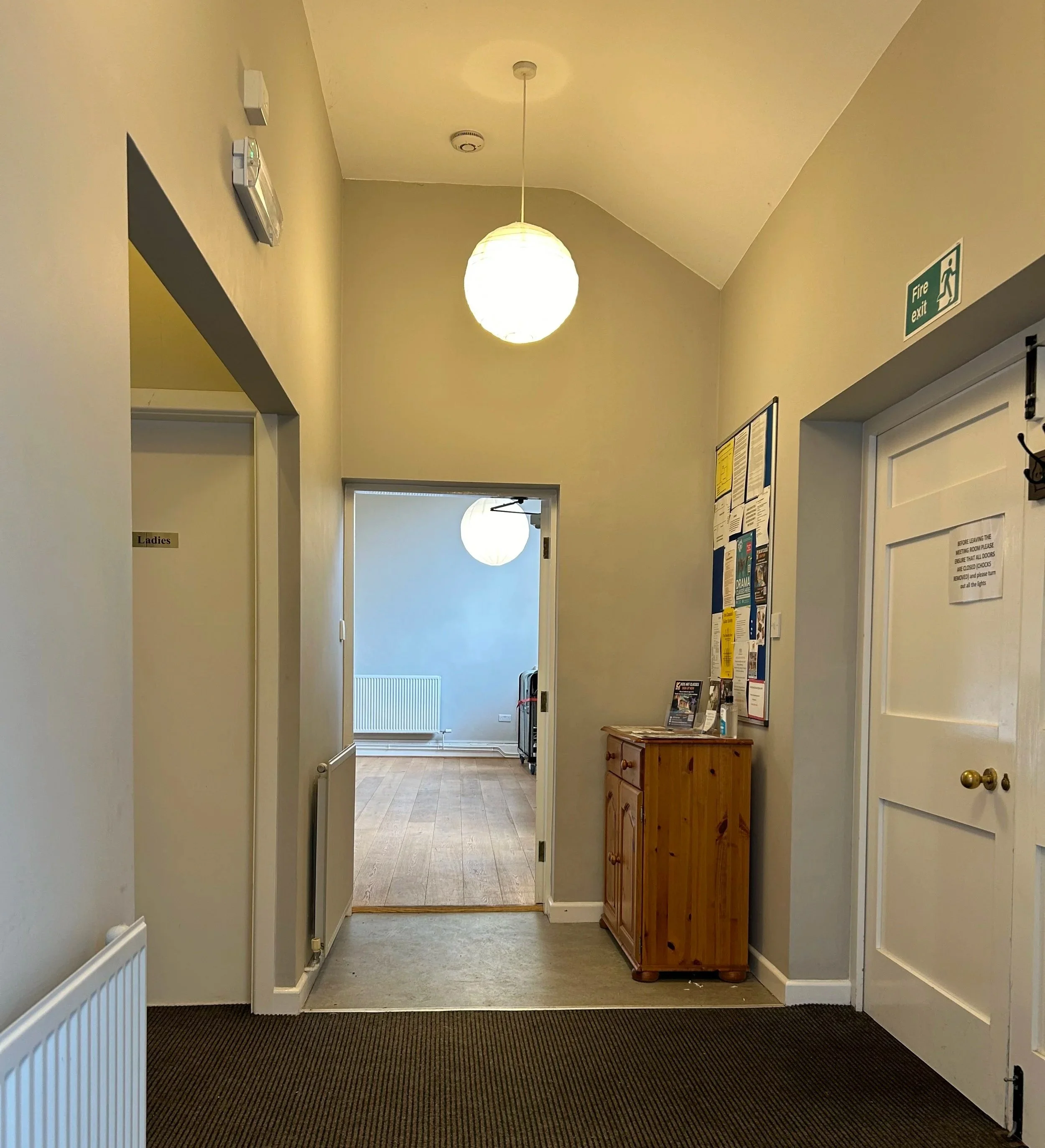 The lobby provides disabled access to the building, ladies and gents toilets (with baby changing facilities) and access to the store room (where tables and chairs are stored).